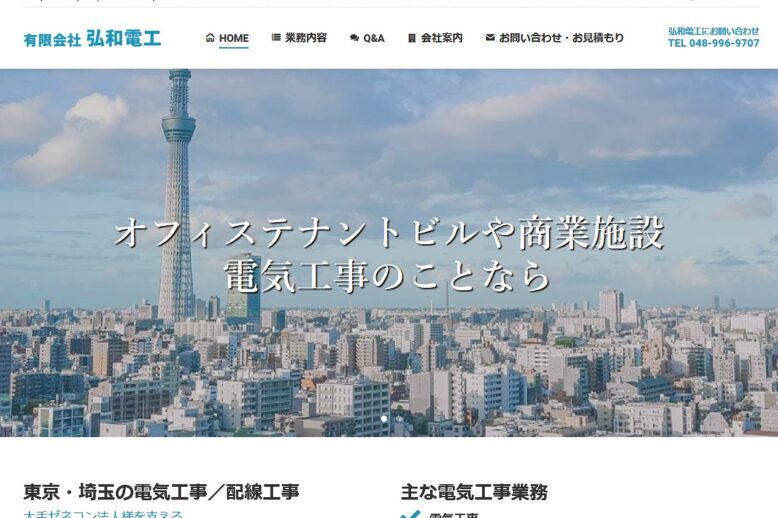 ホームページリニューアル致しました。 今後とも宜しくお願い致します。 有限会社 弘和電工 〒340-0814 埼玉県八潮市南川崎254 TEL:048-996-9707
